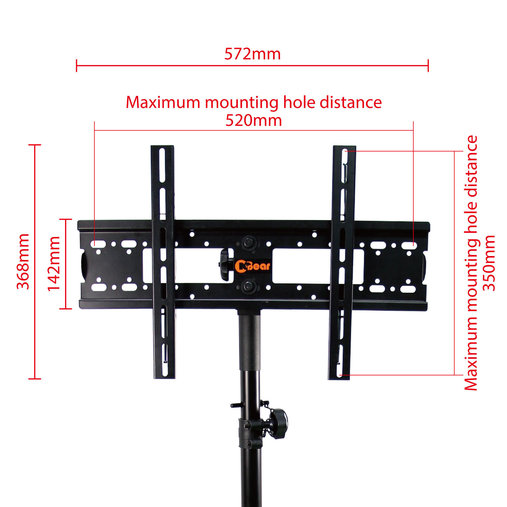 ◆ Make sure your monitor or TV has four mounting holes on the back of the screen that are within the scope of the max distance: Horizontal 430 mm * Vertical 435 mm.