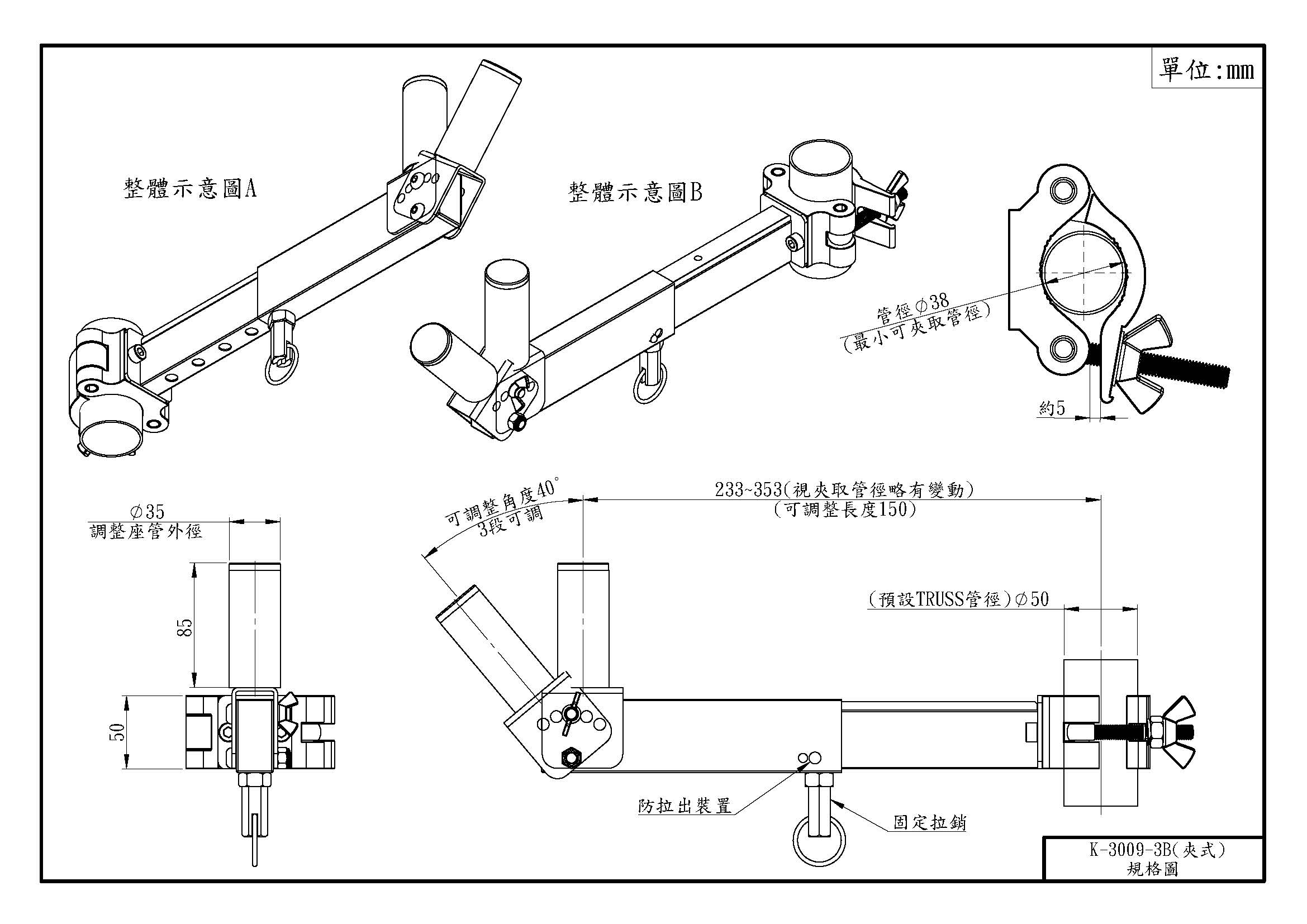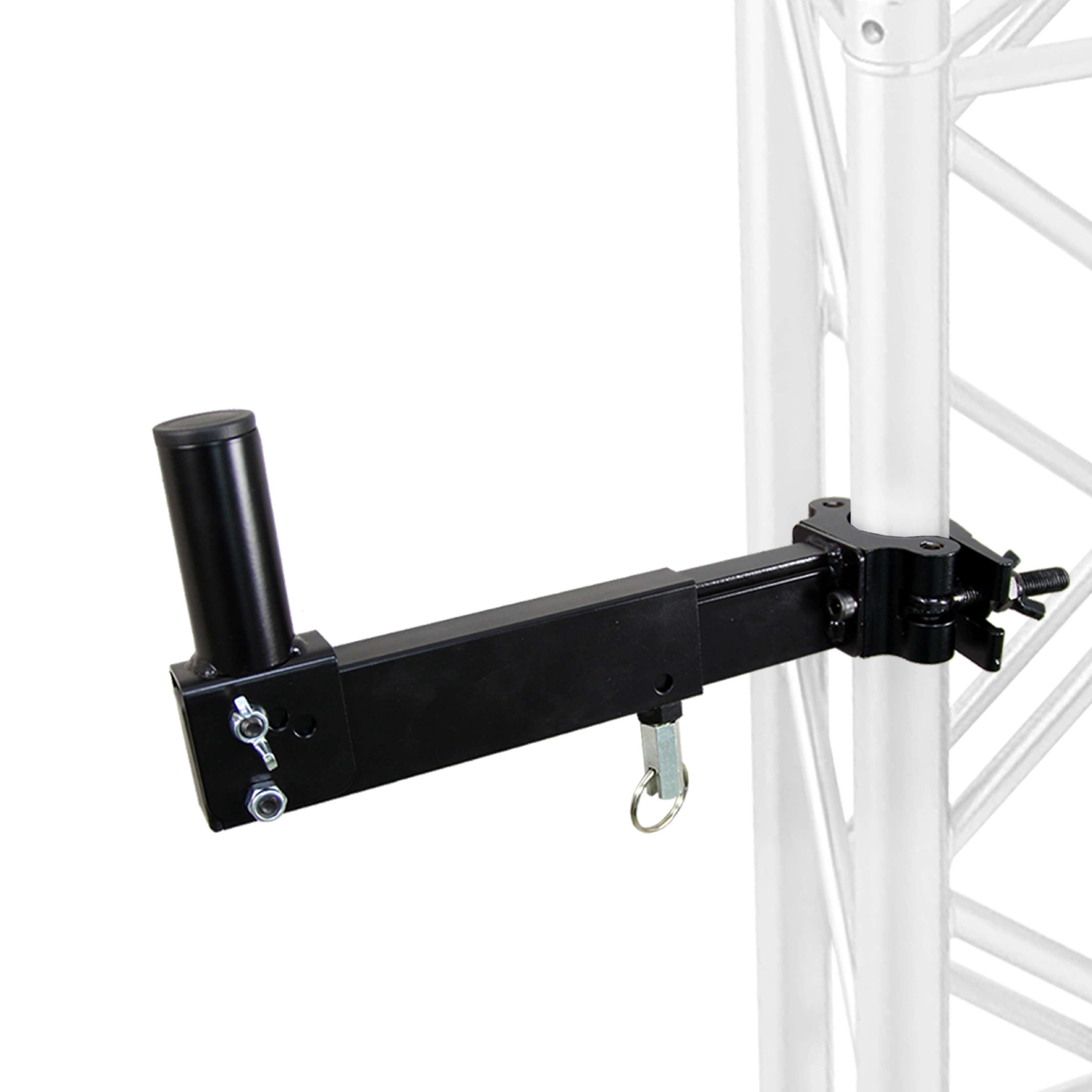 ◆100%台灣製造 ◆用於安裝舞台音箱,TRUSS架專用 ◆夾管設計,安裝方便簡單 ◆可放置市面多廠牌插孔式音箱 ◆喇叭角度可調設計,三段式孔位方便調節 ◆吊臂可伸縮調節,五段式調節 ◆使用耐用金屬材質,確保產品的堅固安全性 ◆載重一對30公斤 ◆一組兩入,安裝便利