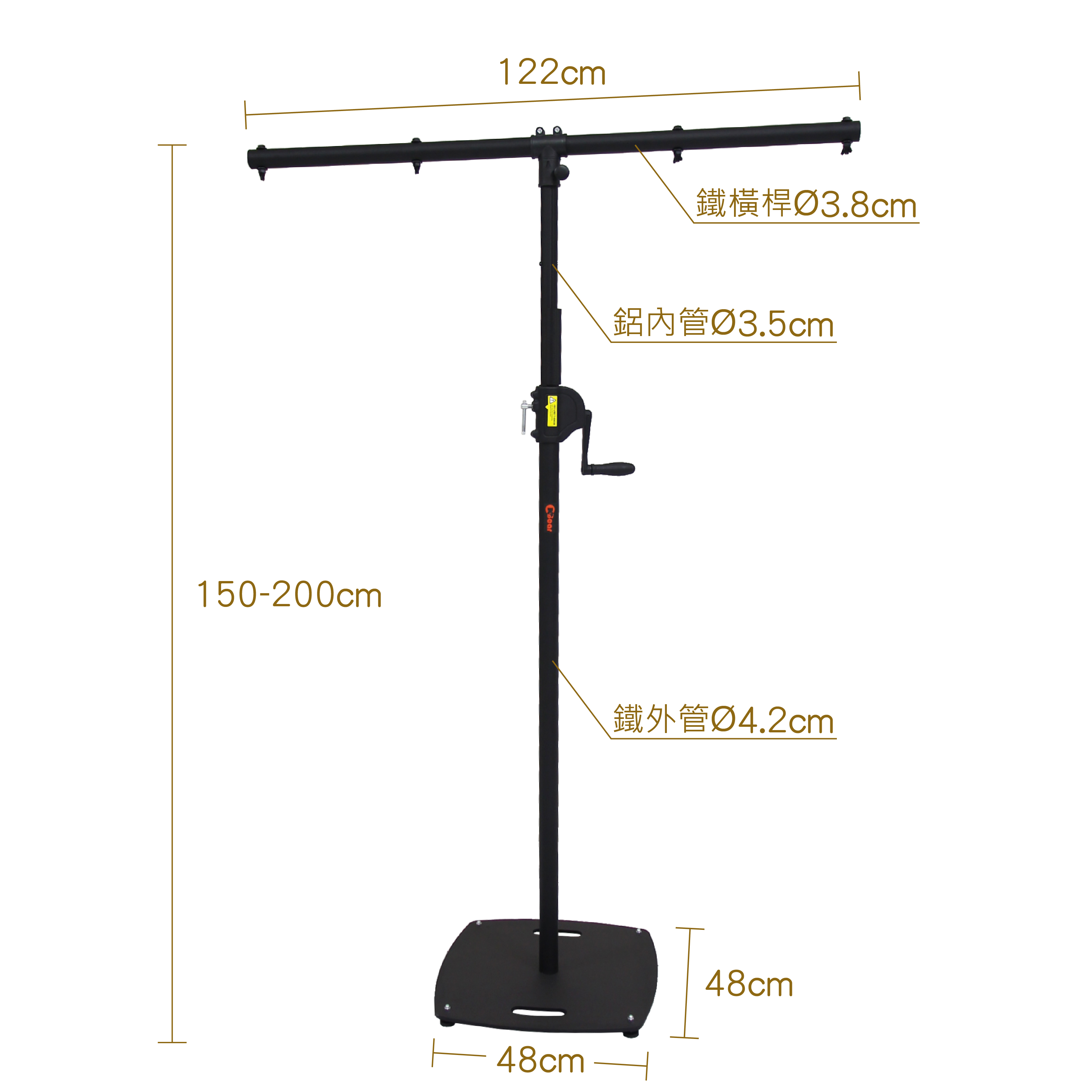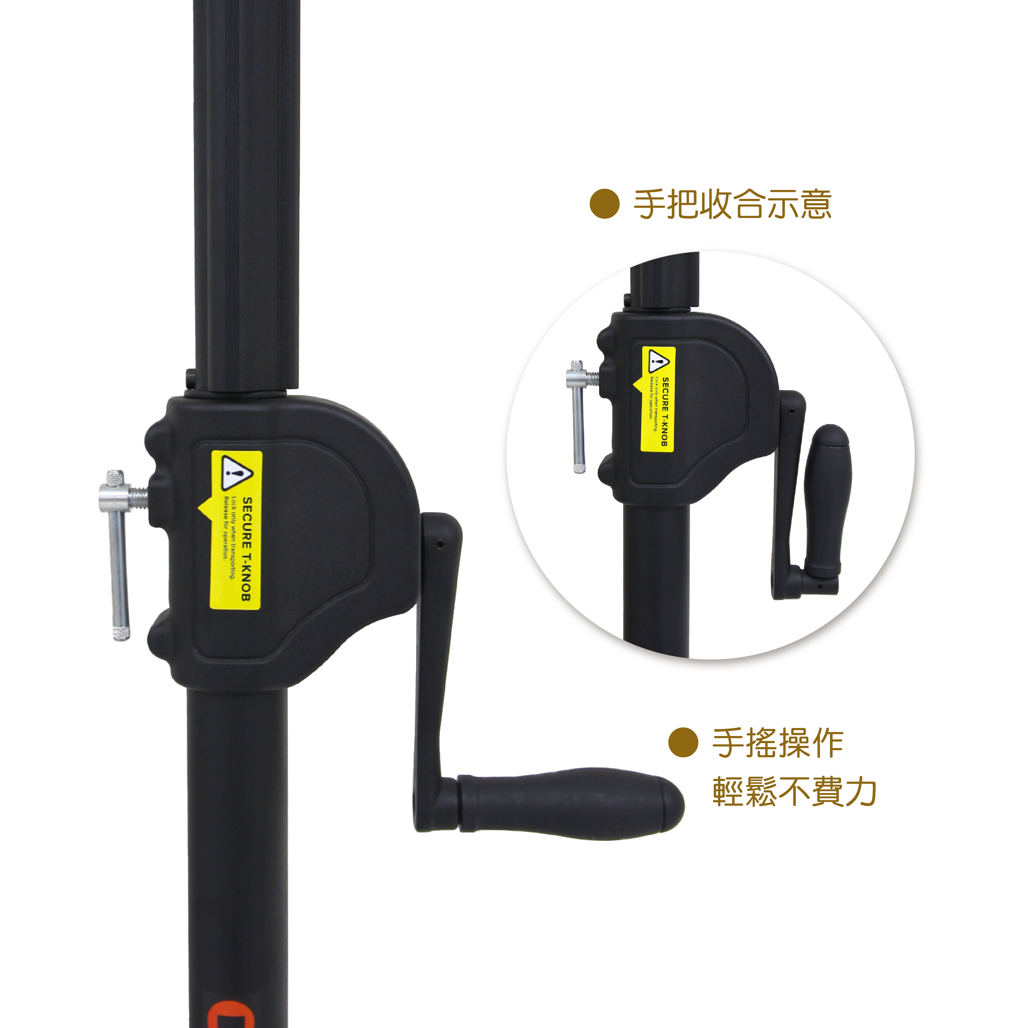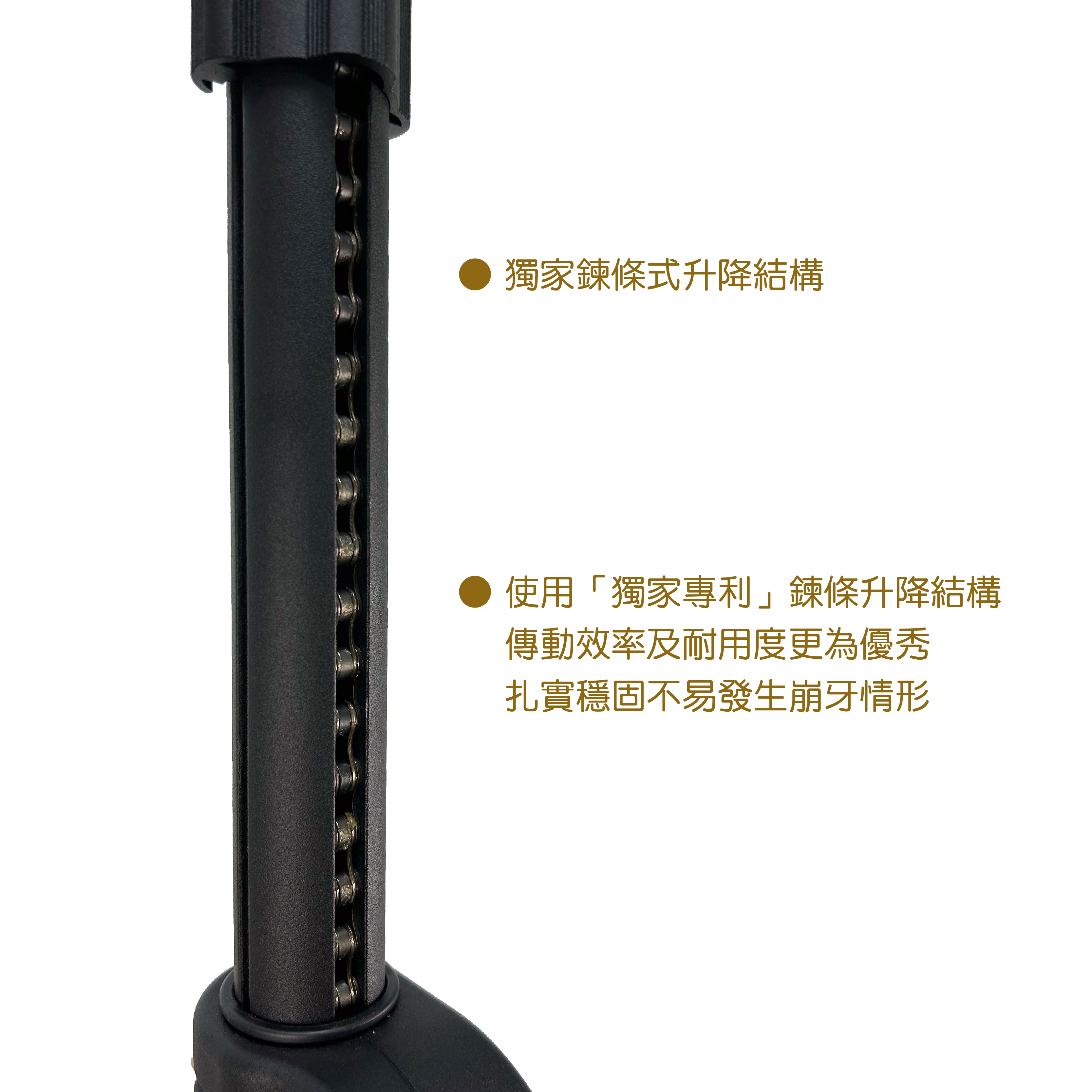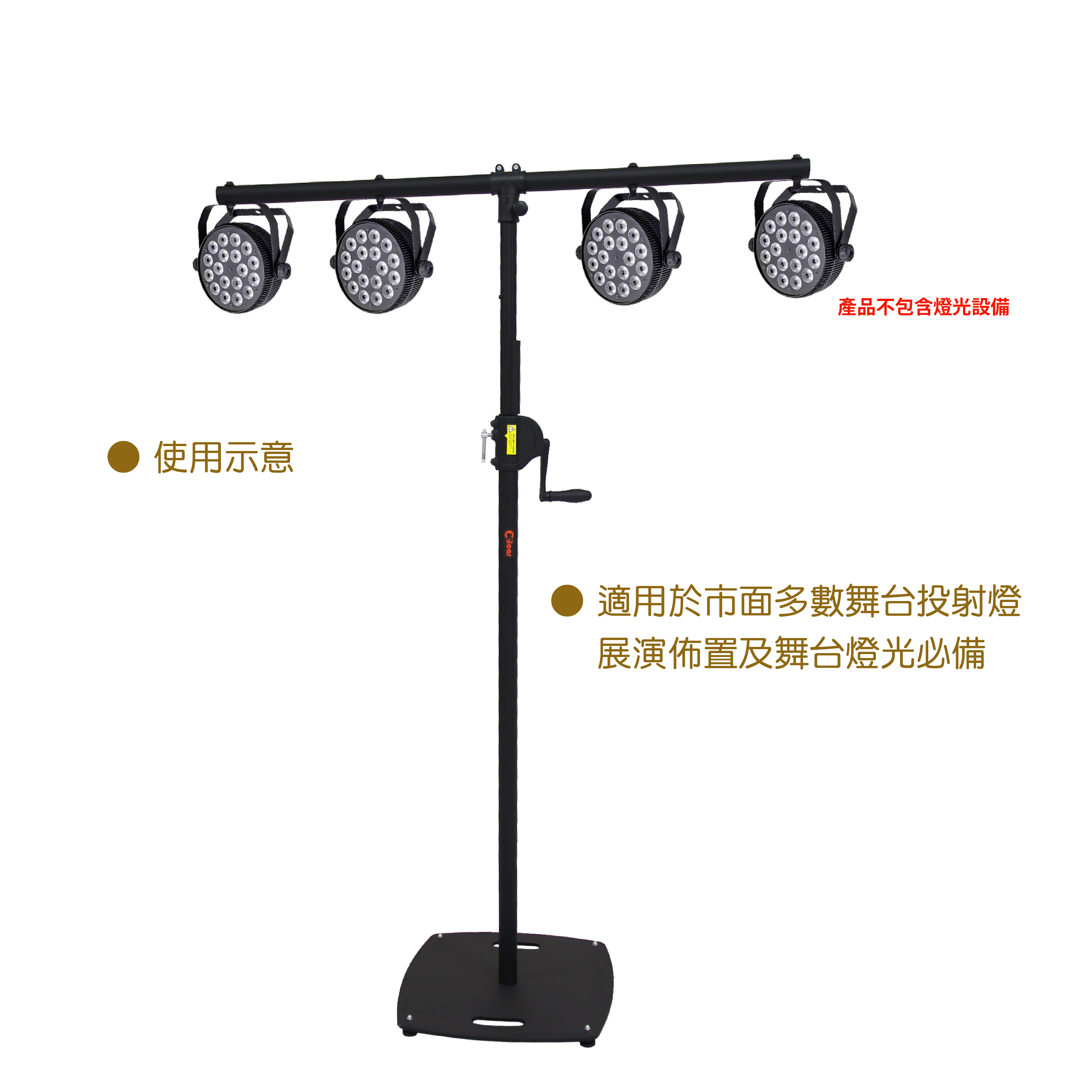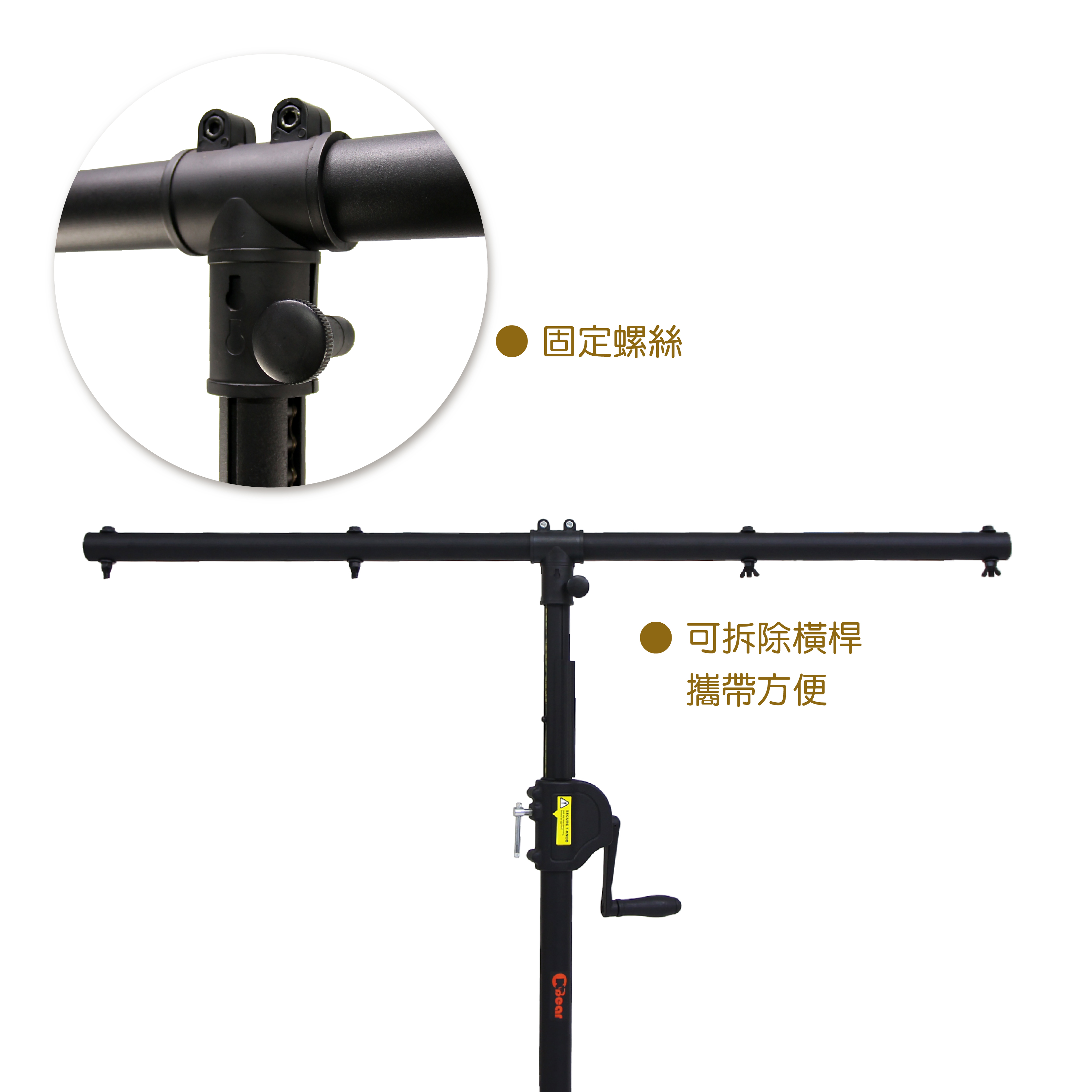 專利鍊條升降系統: 結構穩固,傳動順暢,避免齒合磨損與崩牙。 燈光架橫桿:方便安裝各類燈光設備。 高強度金屬材質:確保結構堅固與安全性。 加重加厚底盤:穩定性更佳。 承重力:最大可承載 30 公斤。 高度可調至 200 公分:適合戶外活動使用。